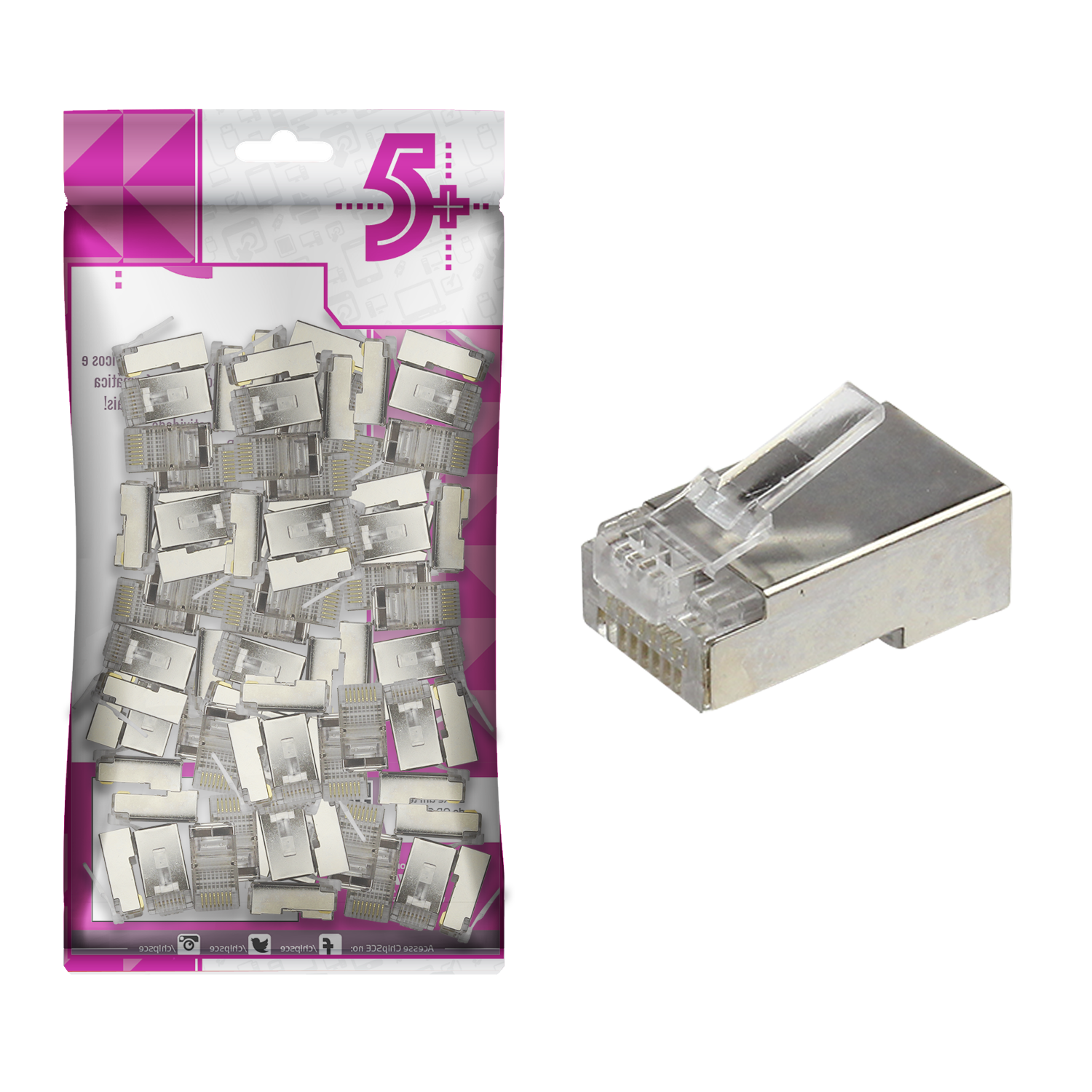 Plug RJ45 de Passagem 8X8 Cat6E Blindado - Pacote 100 unidades